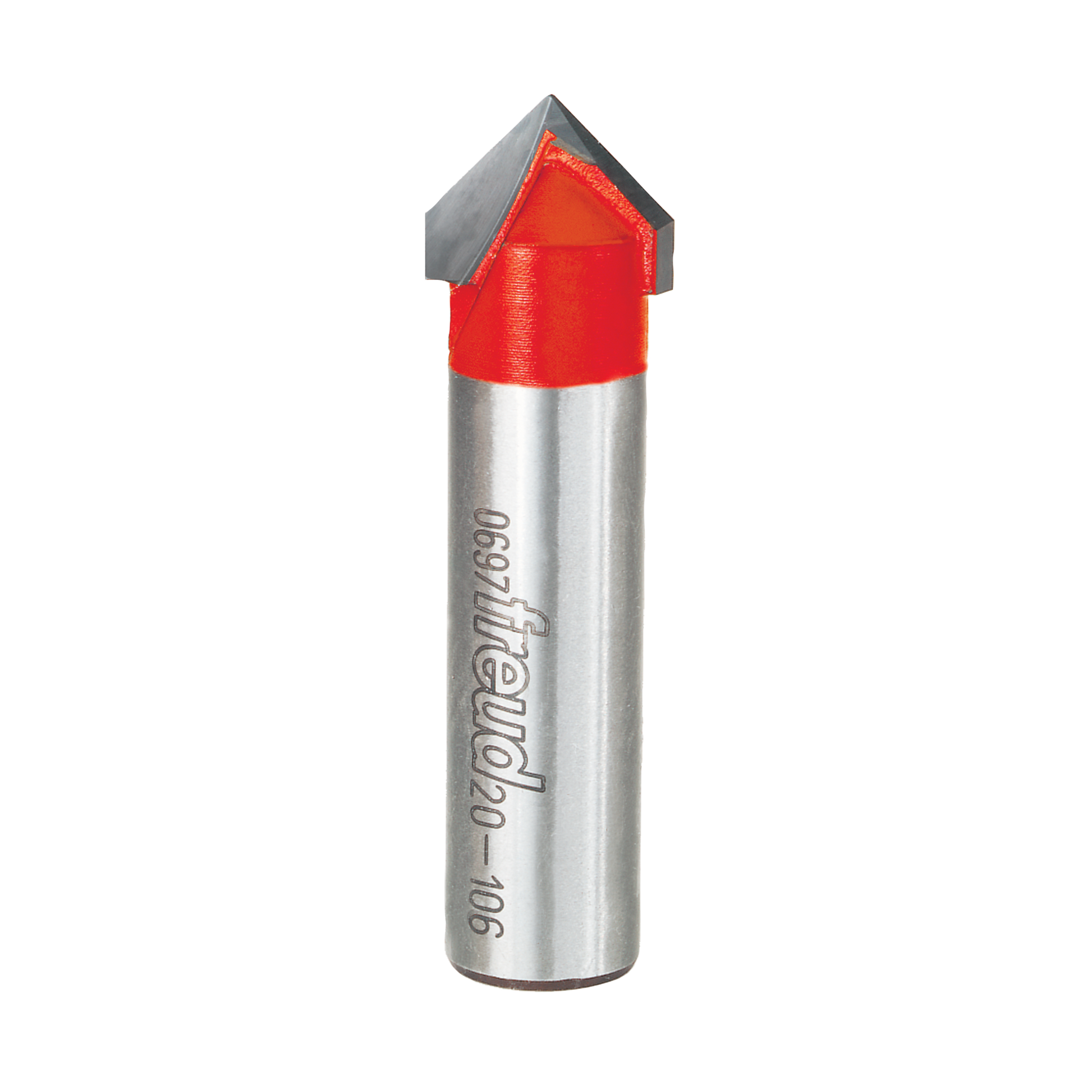 "V" Grooving bits are the perfect choice for making signs, engraving wood plaques, adding decorative accents to furniture or adding visual interest to millwork. Use these versatile bits in hand-held, table-mounted or CNC routers to rout hardwood, softwood, plywood, plastics and composite material. Please note that item 20-502 includes a top bearing to follow your templates or fixtures.