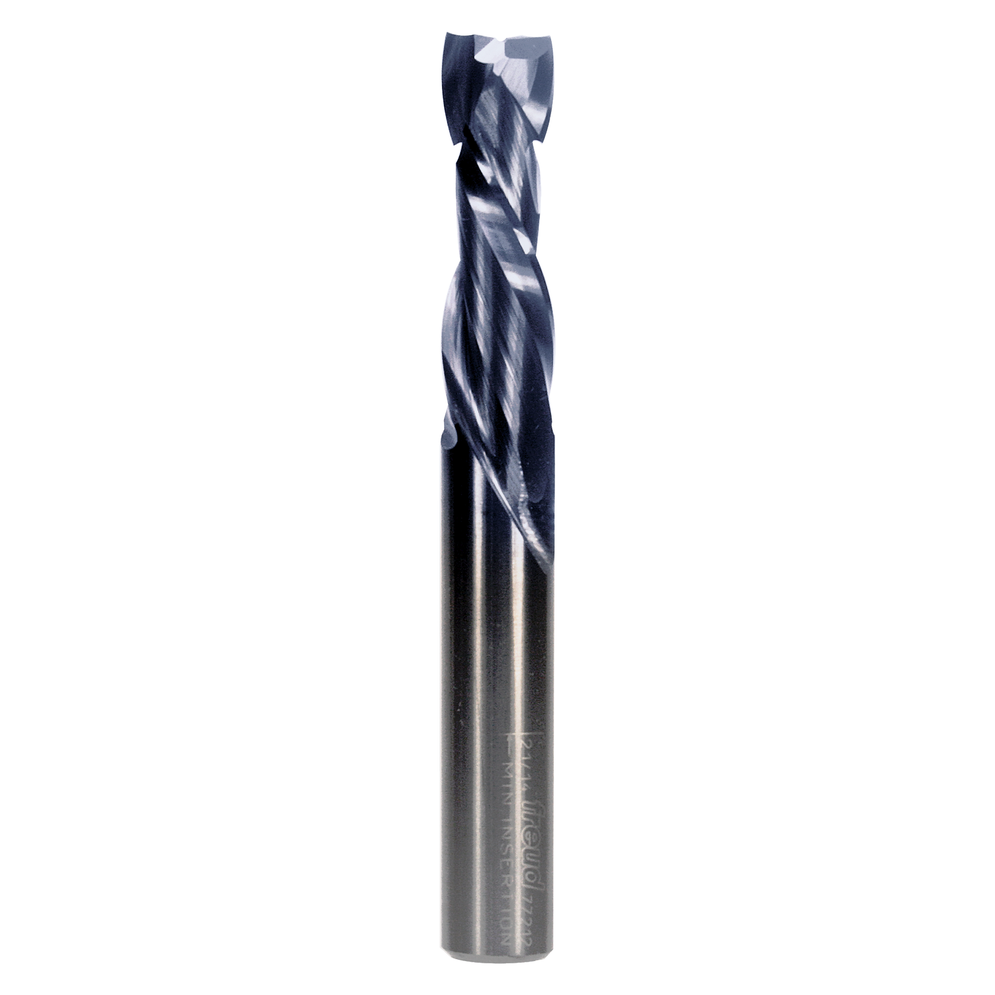 Compression Spiral bits eliminate chipping on both sides of double-sided veneers or laminated materials for the finest finish. These tools combine up shear and down shear flutes to prevent tear out on either side of the material. They are ideal for routing laminates like double-sided melamine panels, and also cuts well in plywood, hardwood or softwood. For use in CNC, hand-held and table-mounted routers.