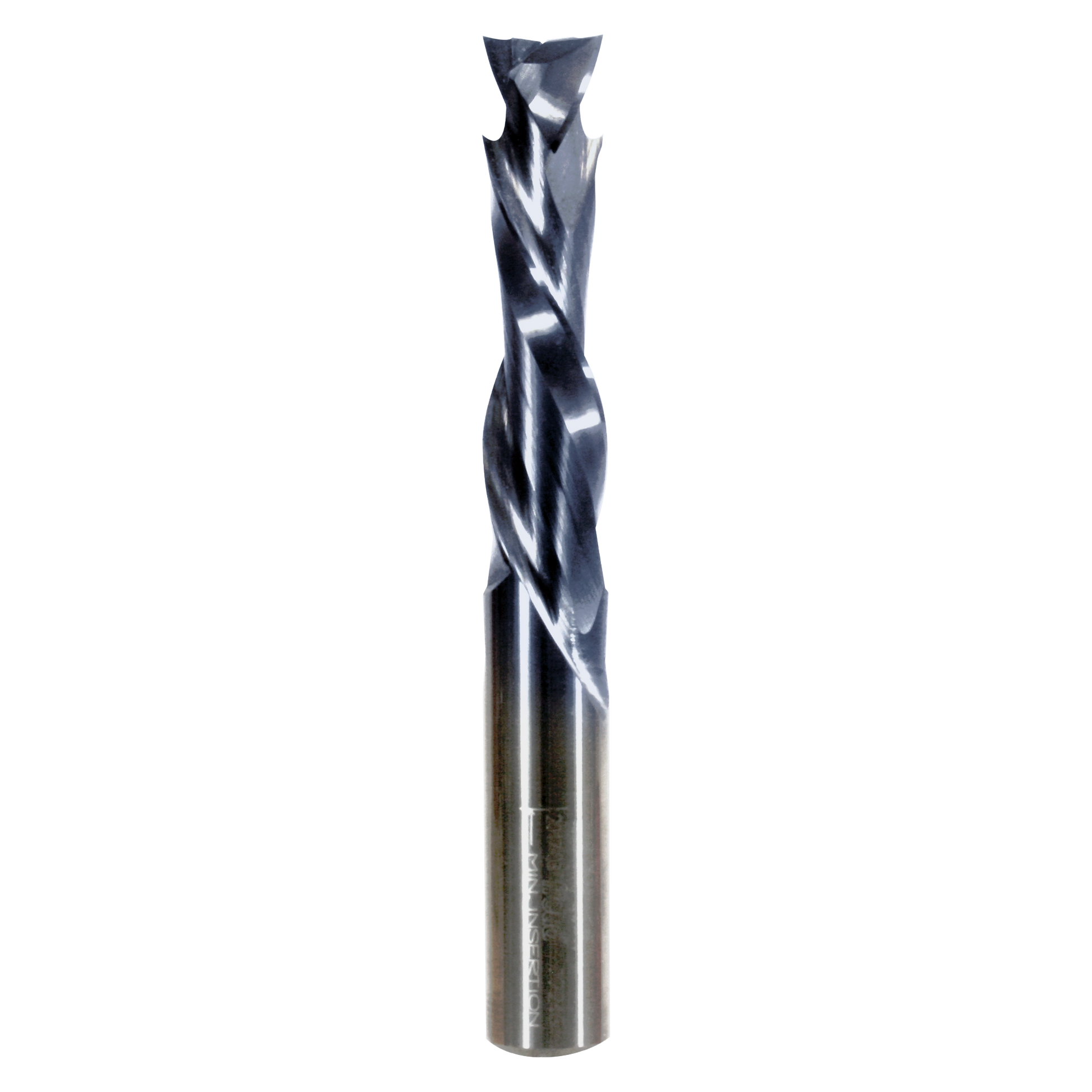 Compression Spiral bits eliminate chipping on both sides of double-sided veneers or laminated materials for the finest finish. These tools combine up shear and down shear flutes to prevent tear out on either side of the material. They are ideal for routing laminates like double-sided melamine panels, and also cuts well in plywood, hardwood or softwood. For use in CNC, hand-held and table-mounted routers.