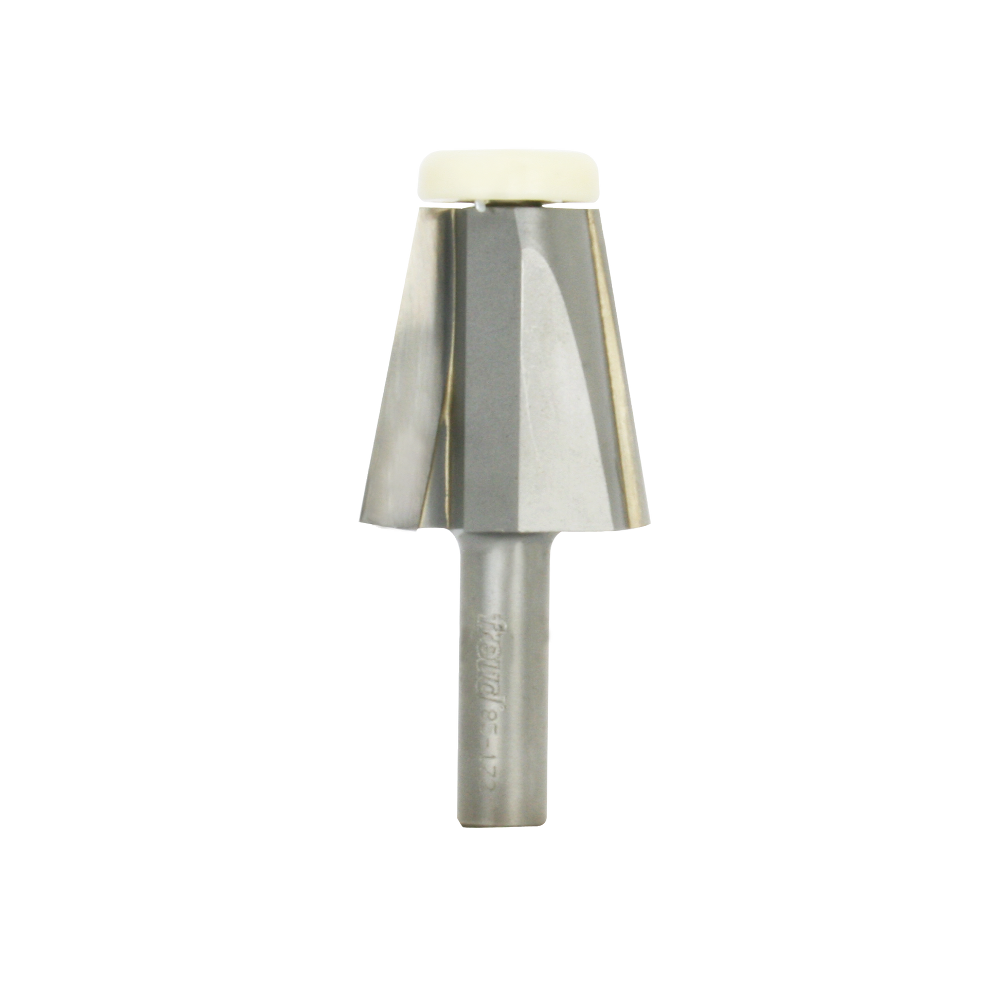 Freud Bevel Bowl Bits are precisely designed to trim the joint between solid surface countertops and solid surface sink bowls with a beveled edge. Choose the cutting angle that matches the bowl you are using. Bits include non-marring synthetic bearings to protect the finished surface of the bowl. Specially formulated carbide is ideal for fabricating solid surface materials. Use in hand-held portable routers.