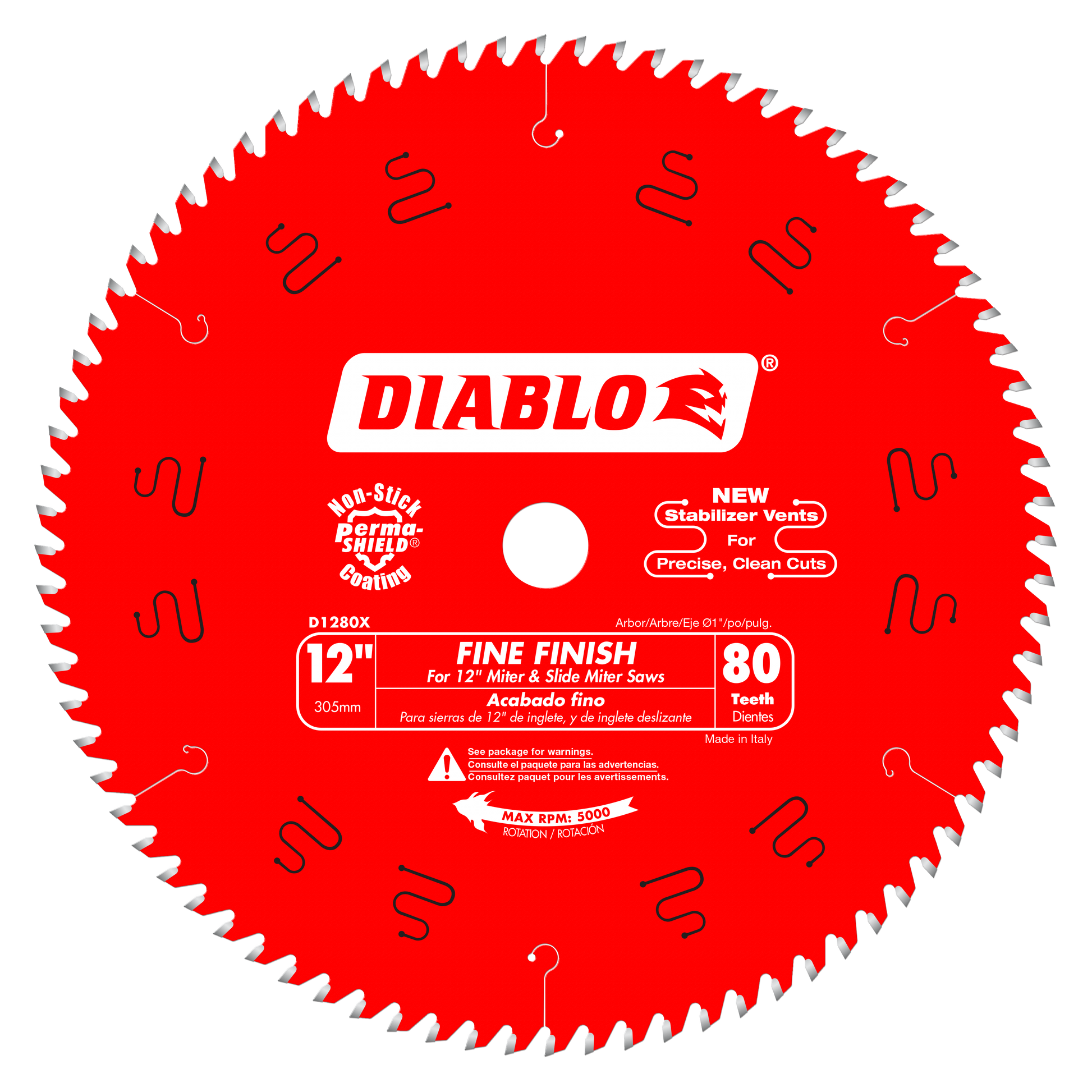 Fine Finish blades let trim crews get the most out of sliding or chop style miter saws, as well as jobsite or workshop table saws. The special cutting geometry and high tooth count produce extremely smooth cuts while minimizing grabbing or blowout. Diablo's particular blade is the ideal choice for trim carpenters because it leaves a smooth surface that requires little to no sanding. It's ideal for crosscutting oak, pine, melamine, plywood, and moulding.
