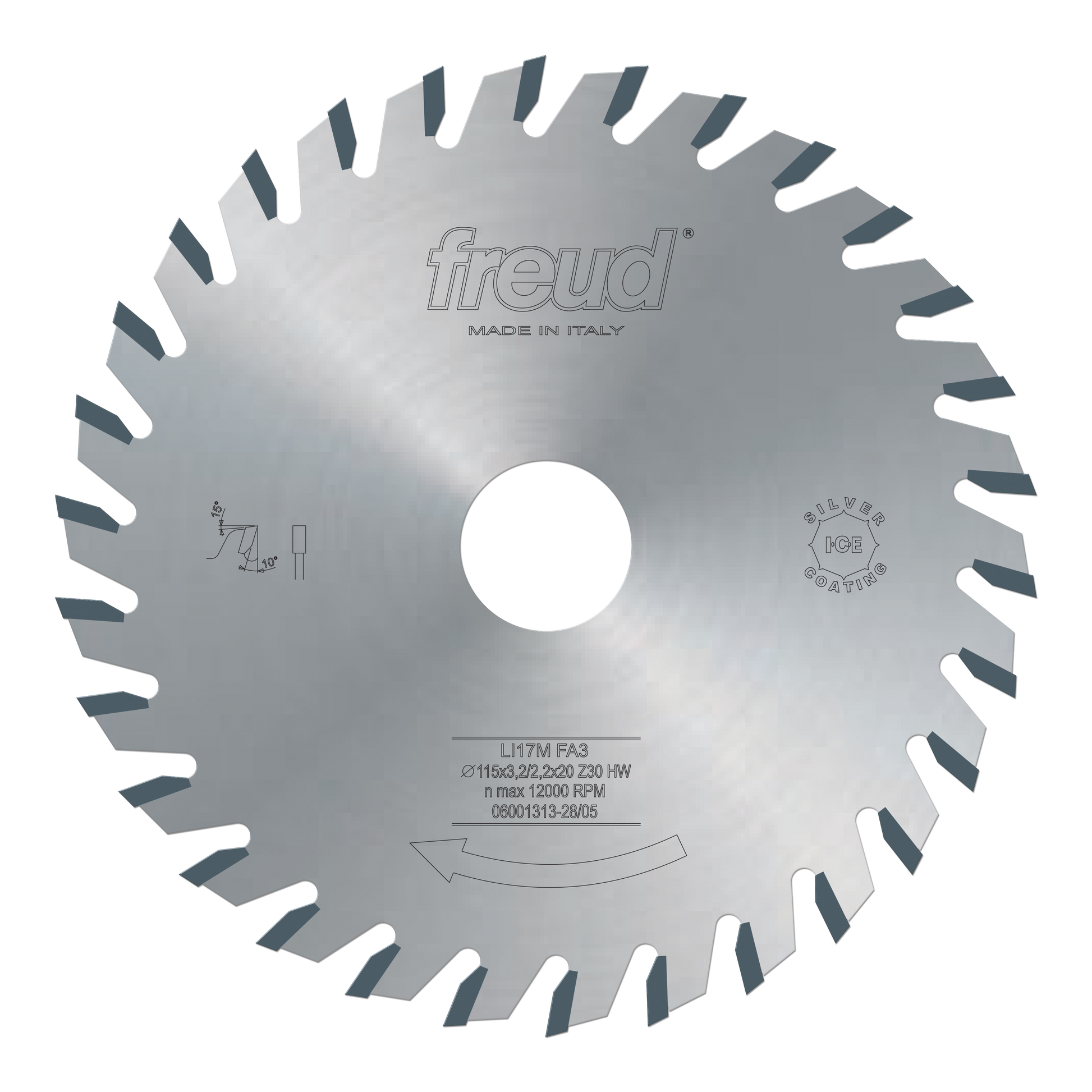 (LI17MFA3, 115mm x 30 x 20mm Bore, 10˚ Hook Angle, 3.2mm Kerf, 2.2mm Plate, Flat-Top Scoring Saw Blade