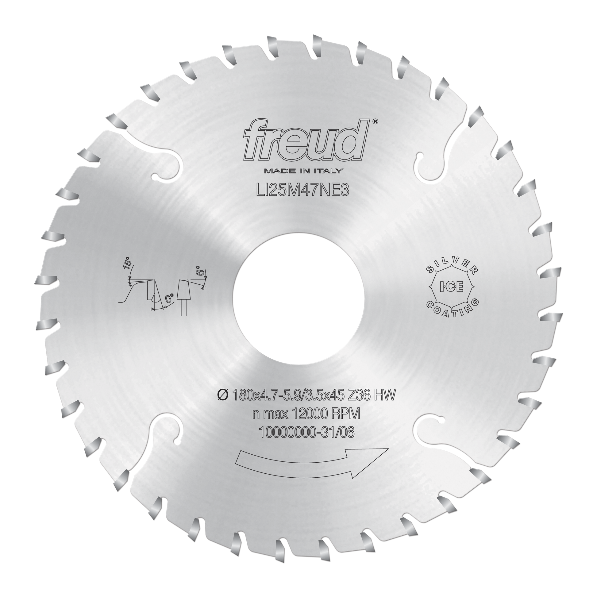 (LI25M47NE3, 180mm x 36 x 45mm Bore, 8˚ Hook Angle, 4.7-5.9mm Kerf, 3.5mm Plate, Conical Scoring Blade