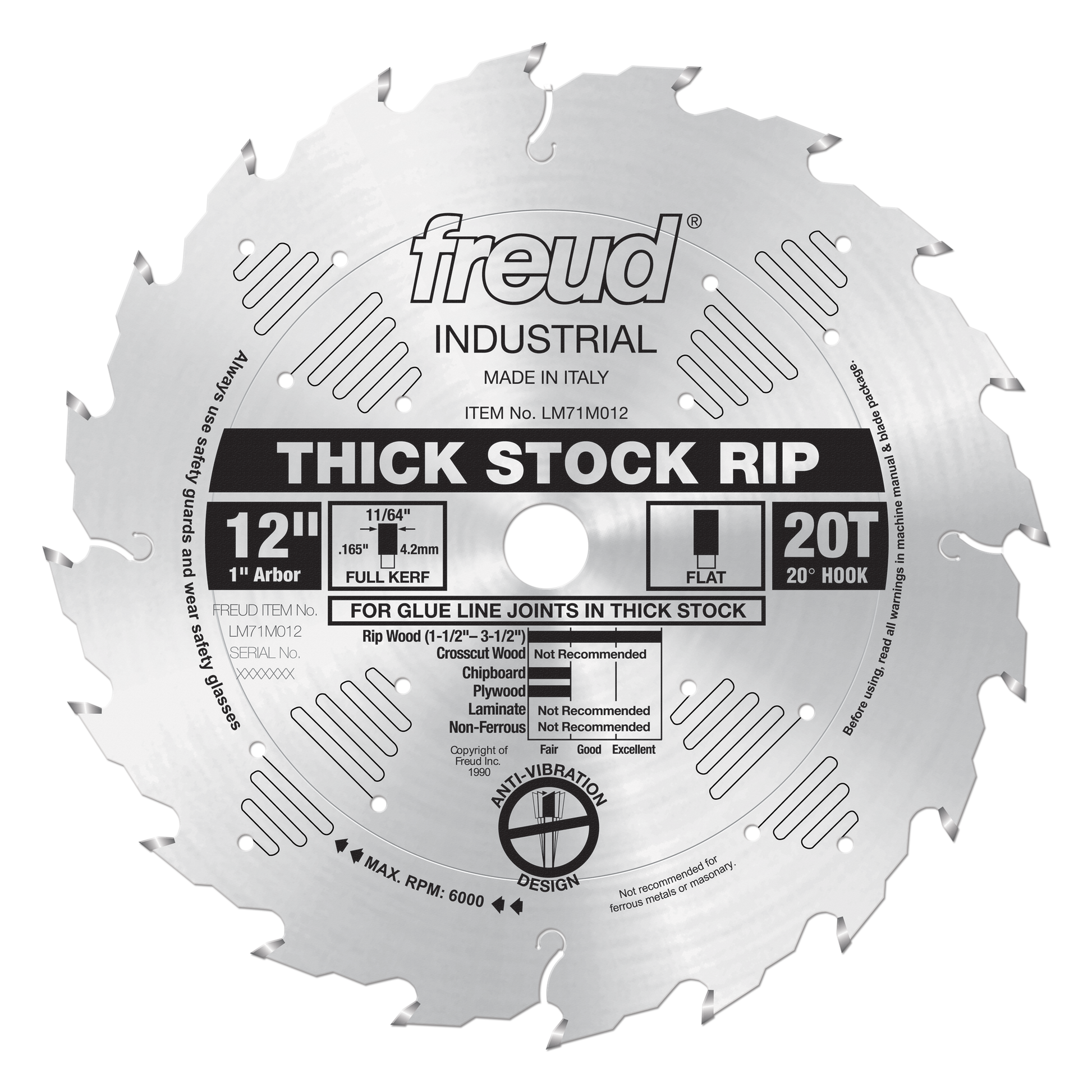 (LM71M012, 12 x 20 x 1" Bore, 20˚ Hook Angle, .165" Kerf, .118" Plate FTG Thick Stock Rip Blade