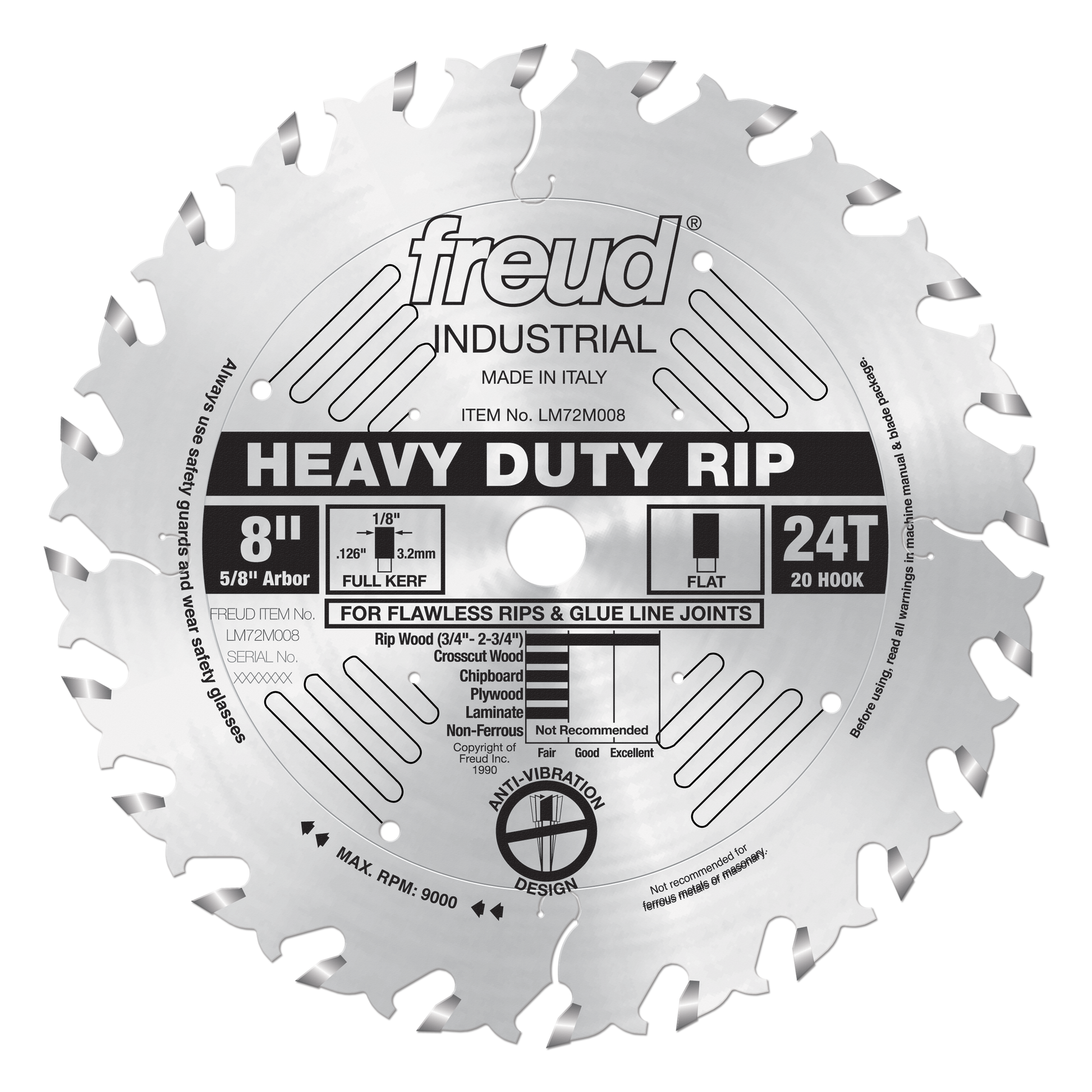 (LM72M008, 8 x 24 x 5/8" Bore, 20˚ Hook Angle, .126" Kerf, .087" Plate, FLAT Heavy-Duty Rip Blade
