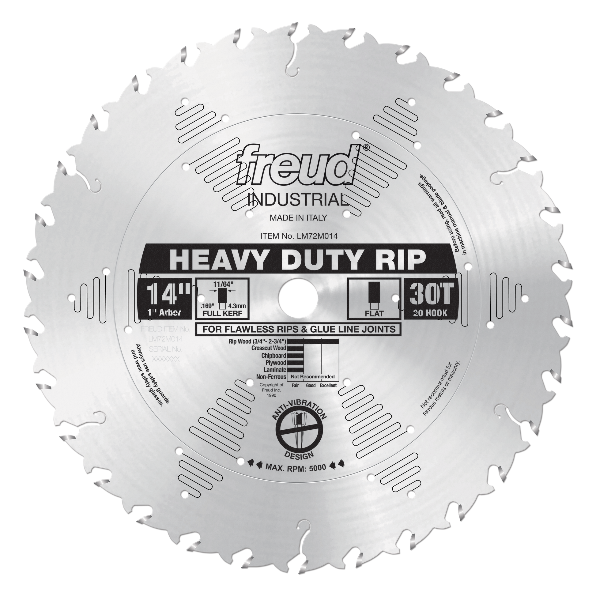(LM72M014, 14 x 30 x 1" Bore, 20˚ Angle, .169" Kerf, .118" Plate, FLAT Heavy-Duty Rip Blade