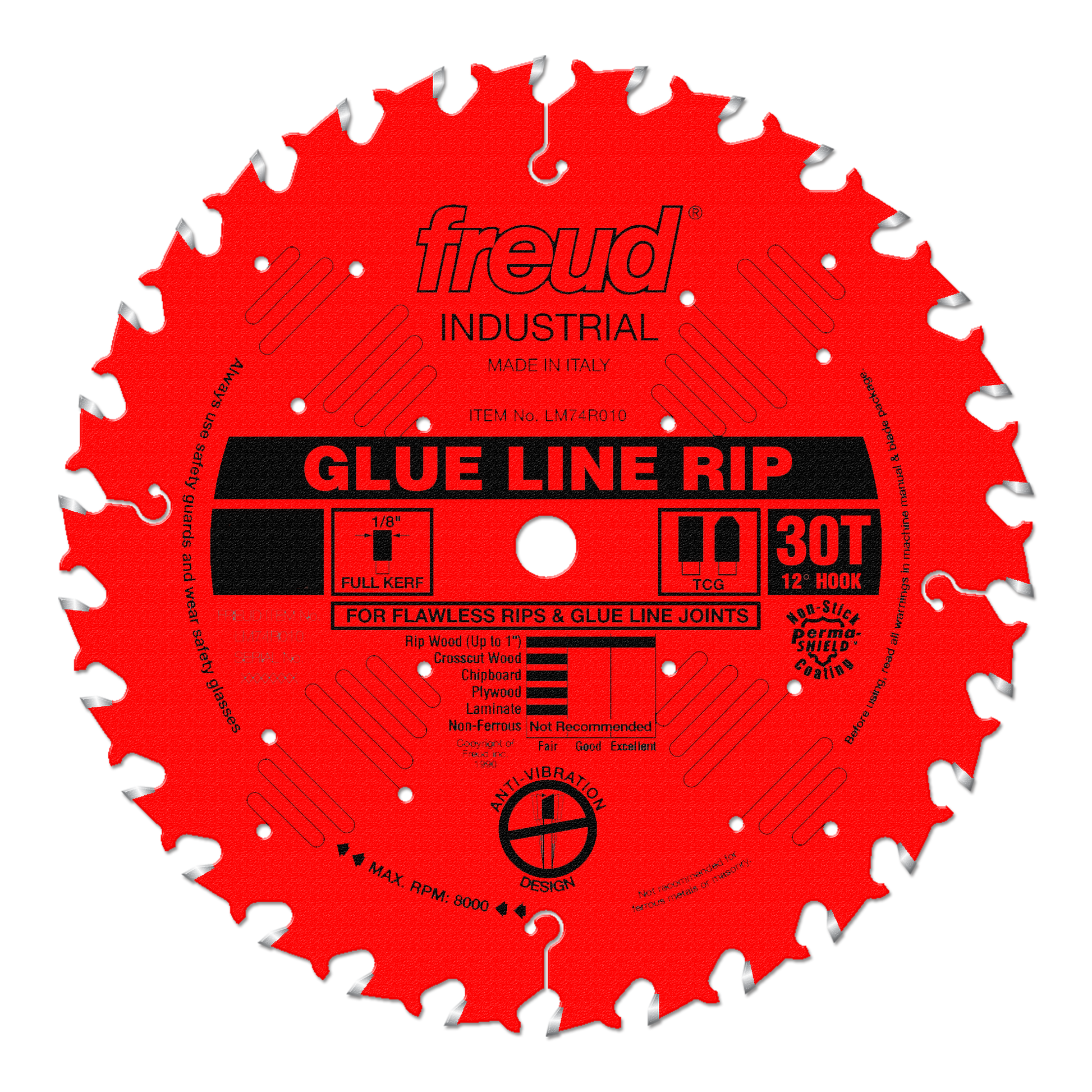 (LM74R014, 14 x 44 x 1" Bore, 14˚ Hook Angle, .138" Kerf, .118" Plate, TCG Glue Line Rip Red PermaShield Blade
