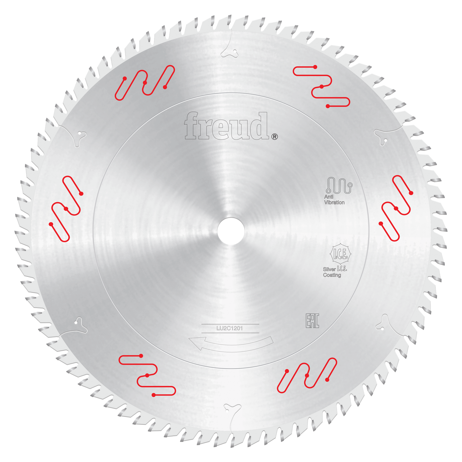 Freud's range of dedicated saw blades for picture frames and molding saw blades deliver superior finishes in solid wood and man-made materials when in crosscutting and mitering applications. Freud-made TiCo Hi-Density Carbide coupled with Freud's Silver I.C.E (Industrial Cooling Element) [or Perma-SHIELD coating] gives these blades the longest run time of other similar blades available today. Freud's unique tooth design and anti-vibration reeds, lead to a high precision, exacting cut of frames and moldings, where the items must be coupled to perfectly match, without chipping, even when covered in paint, metallic foil, filler, plaster and other abrasive and fine materials.
