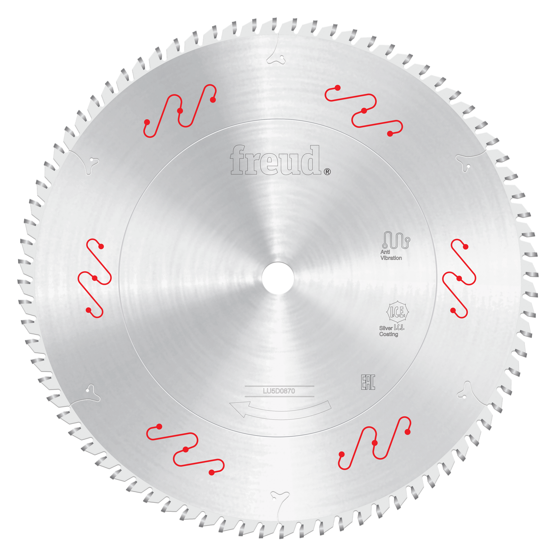 Freud's range of dedicated saw blades for picture frames and molding saw blades deliver superior finishes in solid wood and man-made materials when in crosscutting and mitering applications. Freud-made TiCo Hi-Density Carbide coupled with Freud's Silver I.C.E (Industrial Cooling Element) [or Perma-SHIELD coating] gives these blades the longest run time of other similar blades available today. Freud's unique tooth design and anti-vibration reeds, lead to a high precision, exacting cut of frames and moldings, where the items must be coupled to perfectly match, without chipping, even when covered in paint, metallic foil, filler, plaster and other abrasive and fine materials.