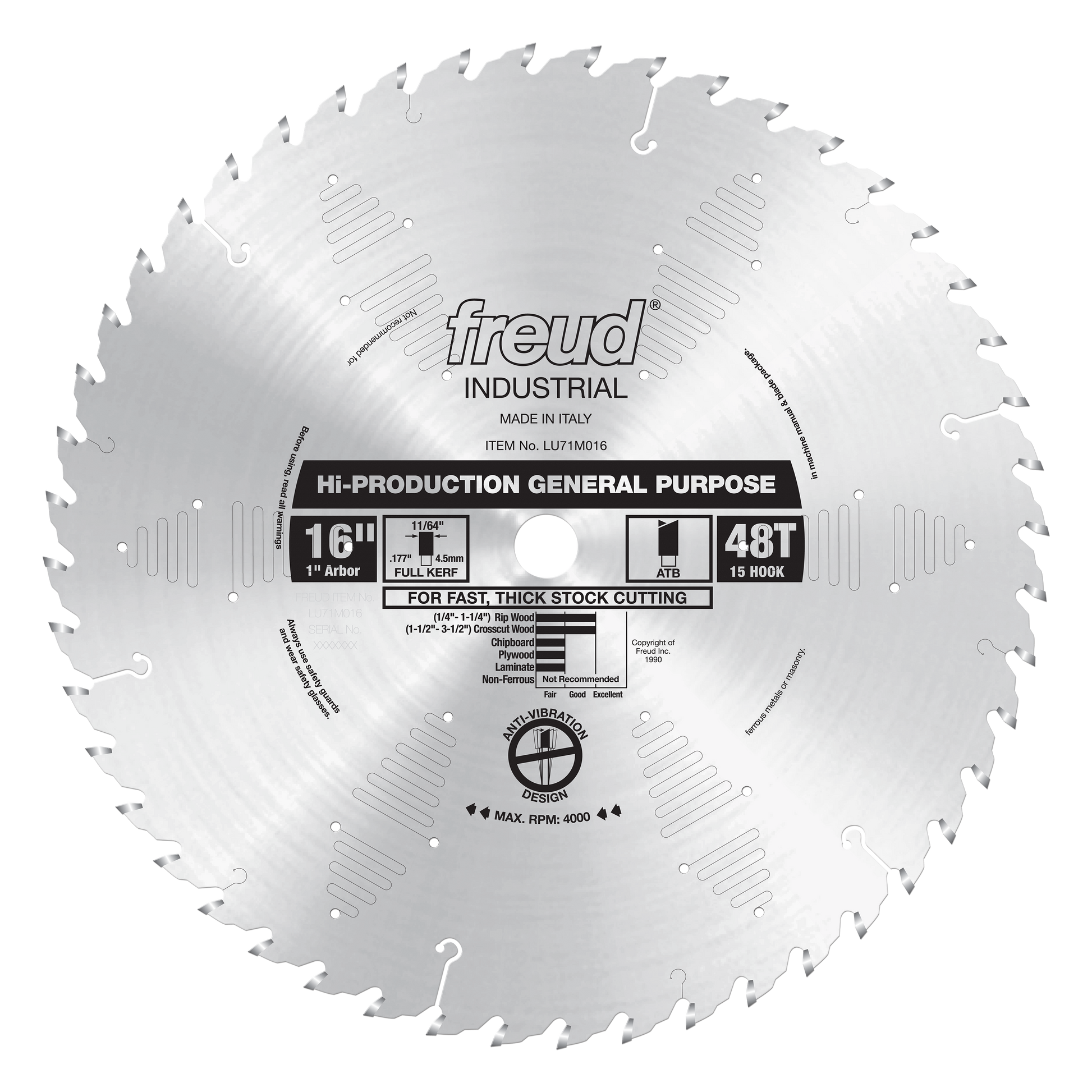 (LU71M016, 16 x 48 x 1" Bore, 15˚ Hook Angle, .177" Kerf, .118" Plate, ATB General Purpose Saw Blade
