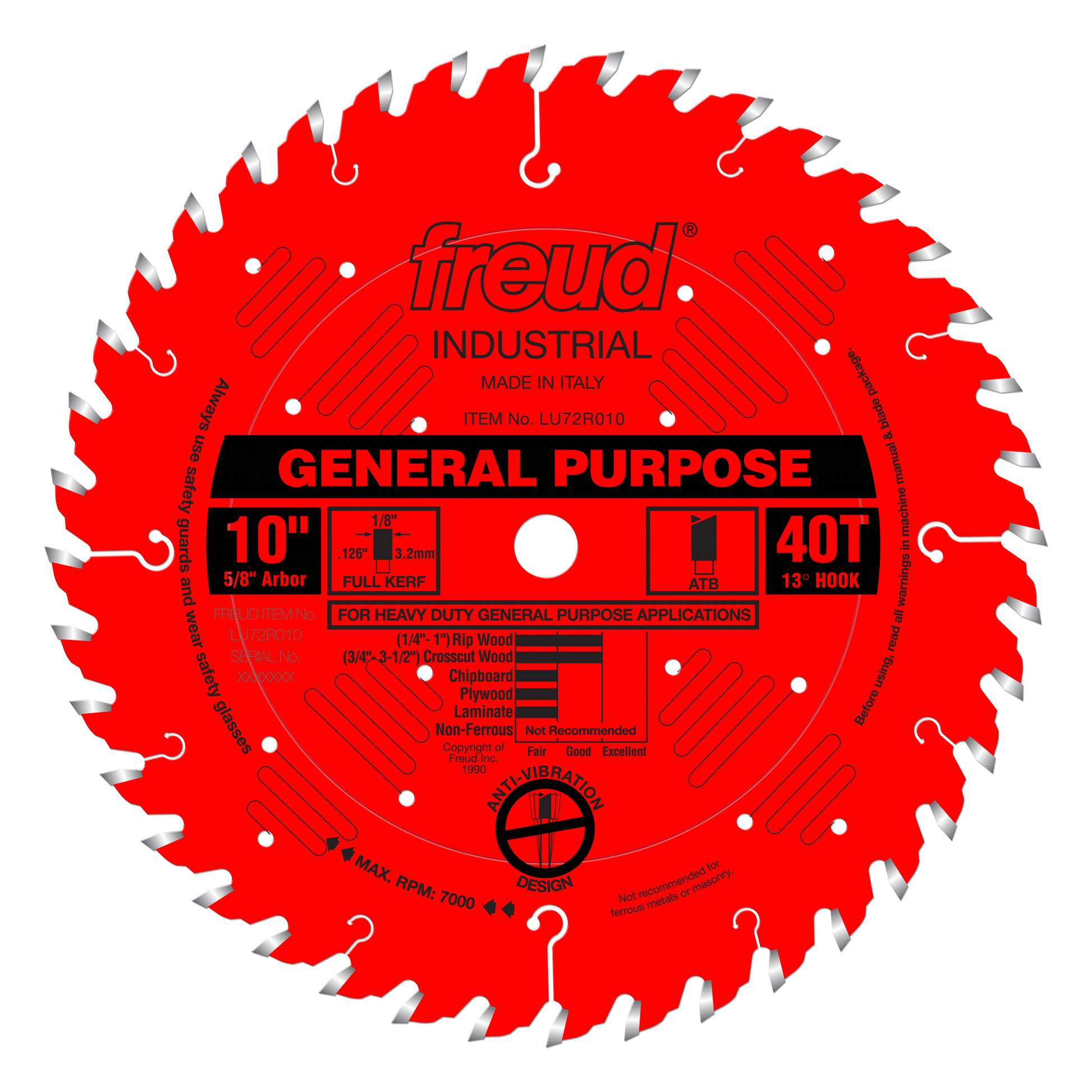 (LU72R010, 10 x 40 x 5/8" Bore, 13˚ Hook Angle, .126" Kerf, .087" Plate, Hi-ATB General Purpose Saw Blade