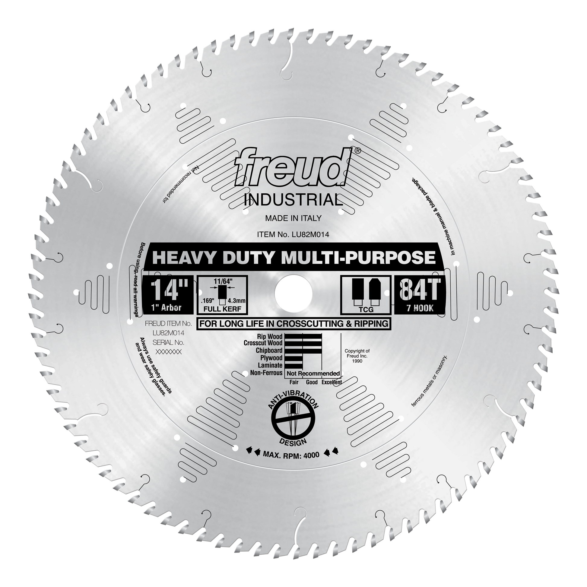 (LU82M014, 14 x 84 x 1 Bore, 10˚ Hook Angle, .169" Kerf, .118" Plate, TCG Heavy Duty Multi-Purpose Saw Blade