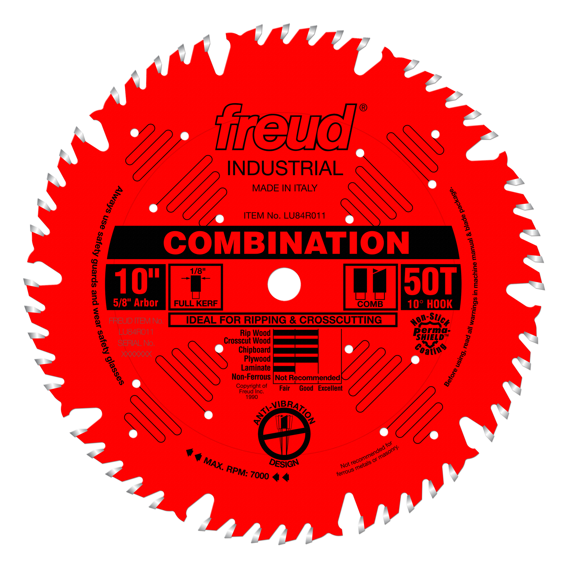 This ultimate combination blade combines one flat tooth for ripping, followed by four alternate top bevel teeth for crosscutting and a large gullet for effective chip clearance. This blade also features laser cut anti-vibration slots, practically eliminating the vibration that resonates in standard blades. With this ultimate combination blade, there is no need for stabilizers.