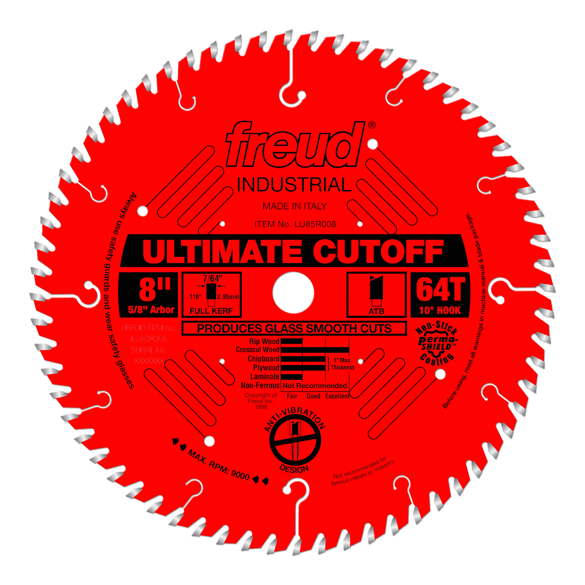(LU85R008, 8 x 64 x 5/8" Bore, 10˚ Hook Angle, .116" Kerf, .098" Plate, ATB Ultimate Cut-Off Red Perma Shield Saw Blade