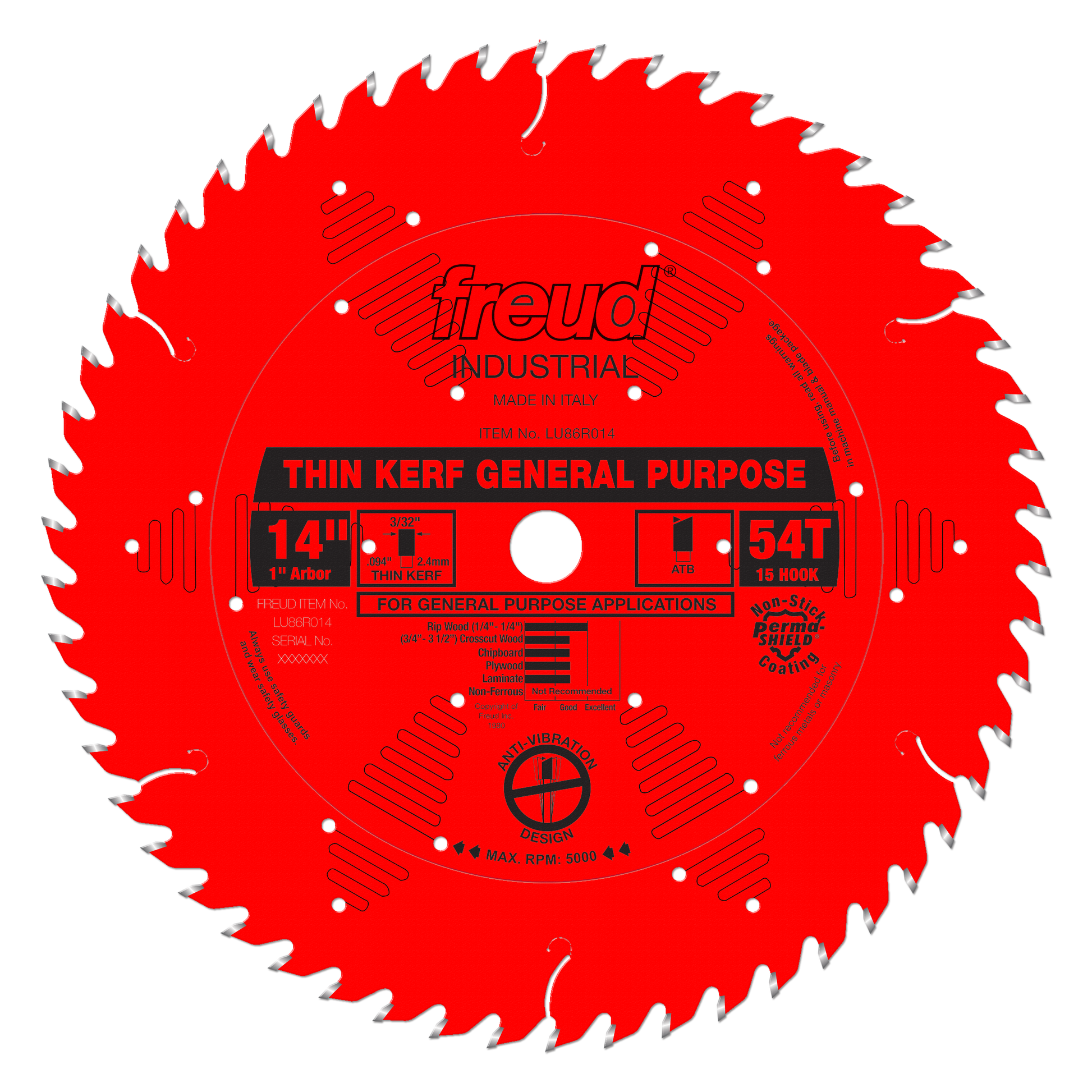 (LU86R014 , 14 x 54 x 1" Bore, 13˚ Hook Angle, .106" Kerf, .079" Plate, ATB Thin Kerf General Purpose Red Perma Shield Saw Blade
