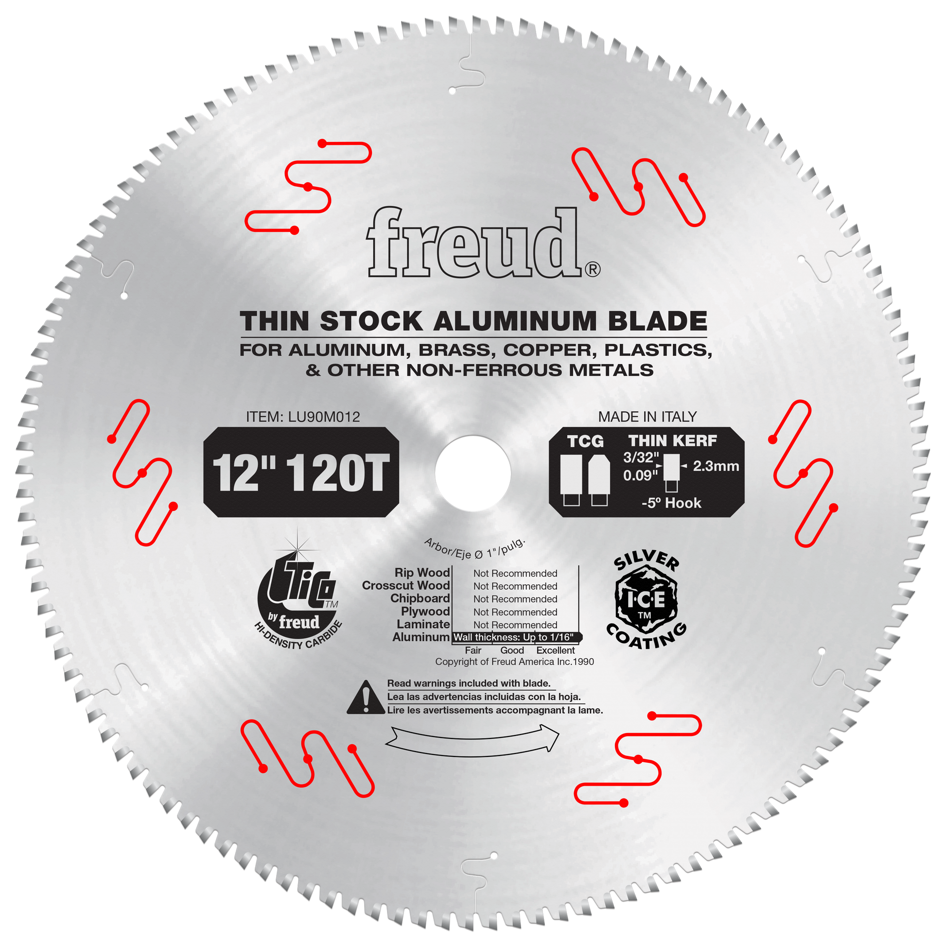 (LU90M012, 12 x 120 x 1" Bore, -5˚ Hook Angle, .091" Kerf, .071" Plate, TCG Thin Stock Non-Ferrous Saw Blade