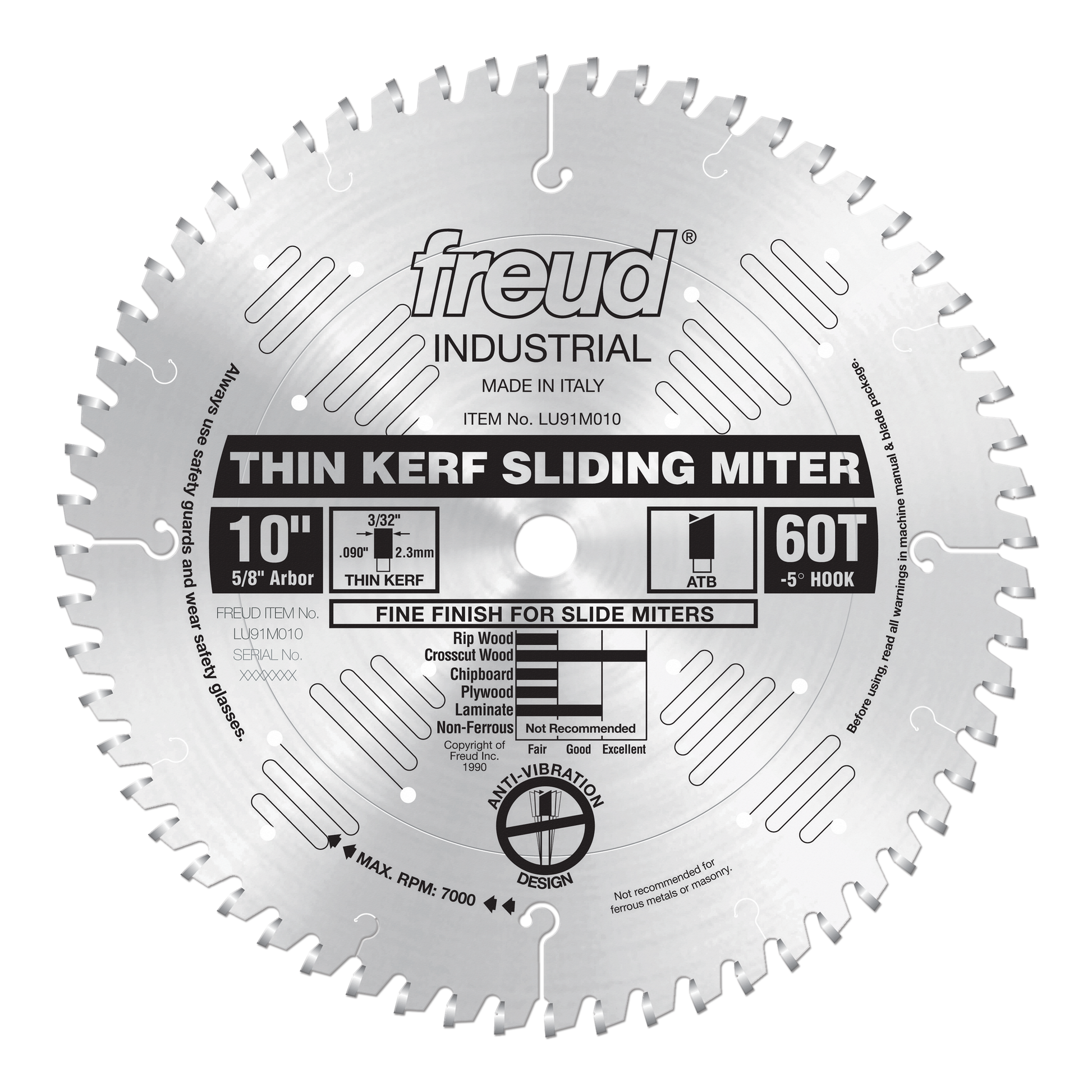 (LU91M010, 10 x 60 x 5/8 Bore, -5˚ Hook Angle, .090" Kerf, .071" Plate, ATB Thin Kerf Sliding Compound Miter Saw Blade