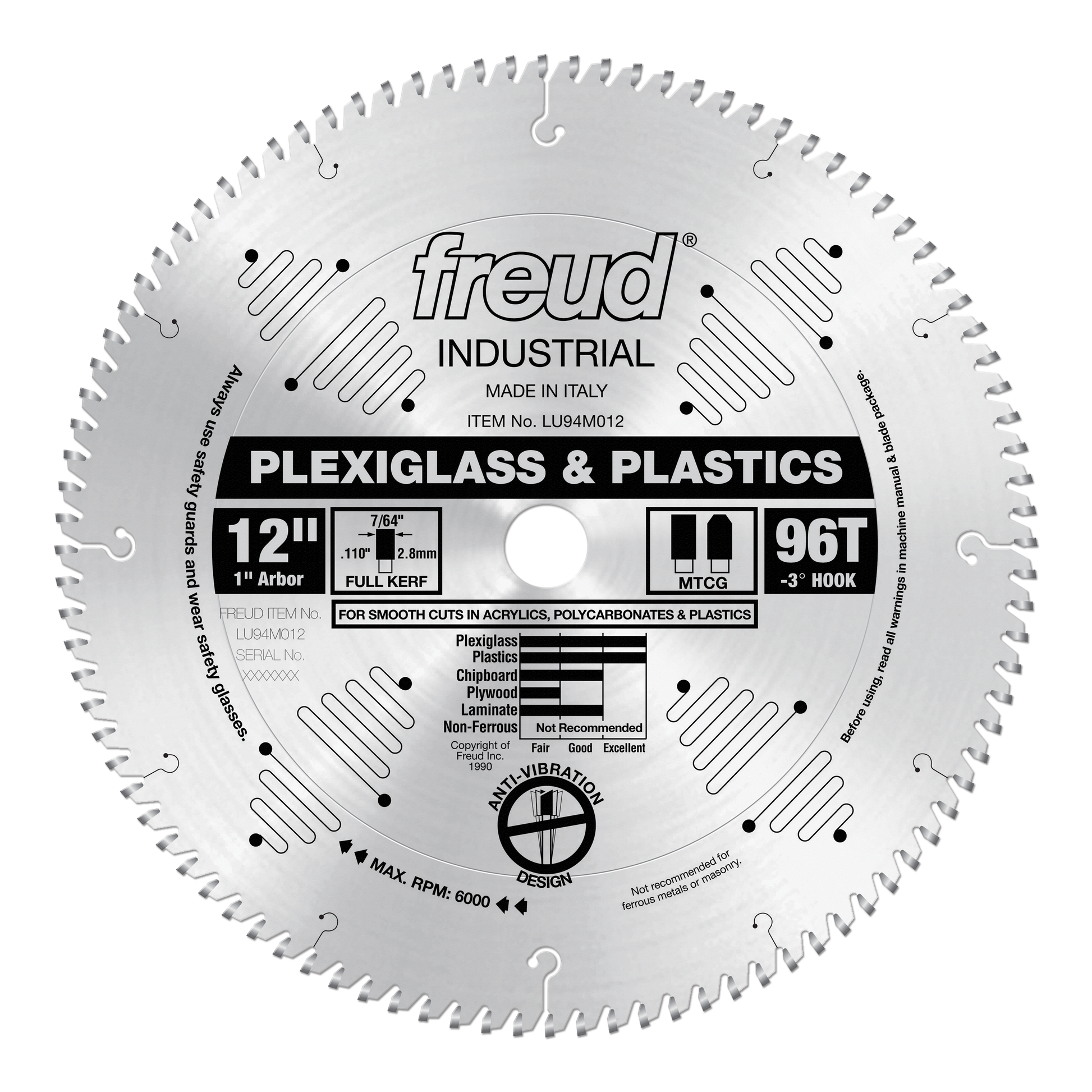 (LU94M012, 12 x 96 x 1" Bore, -3˚ Hook Angle, .110" Kerf, .087" Plate, MTCG Plastic-Cutting Saw Blade