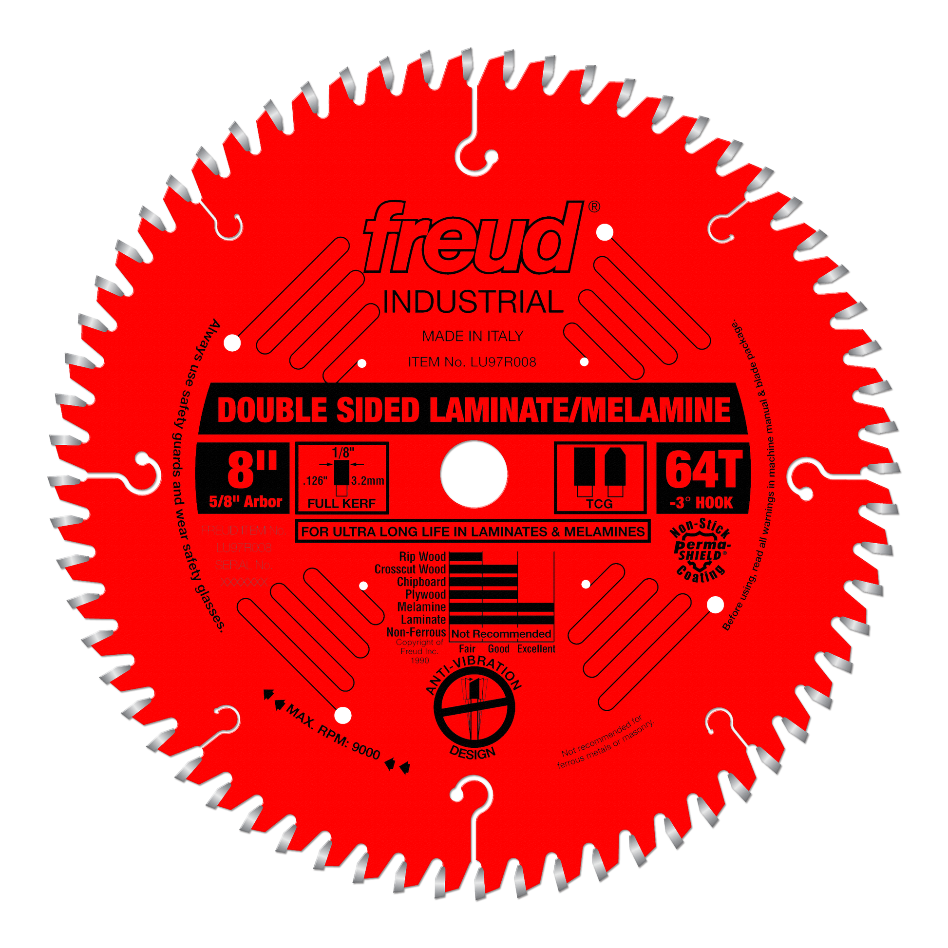 (LU97R008, 8 x 64 x 5/8" Bore, -3˚ Hook Angle, .126" Kerf, .087" Plate, TCG Dbl-Sided Laminate Saw Blade