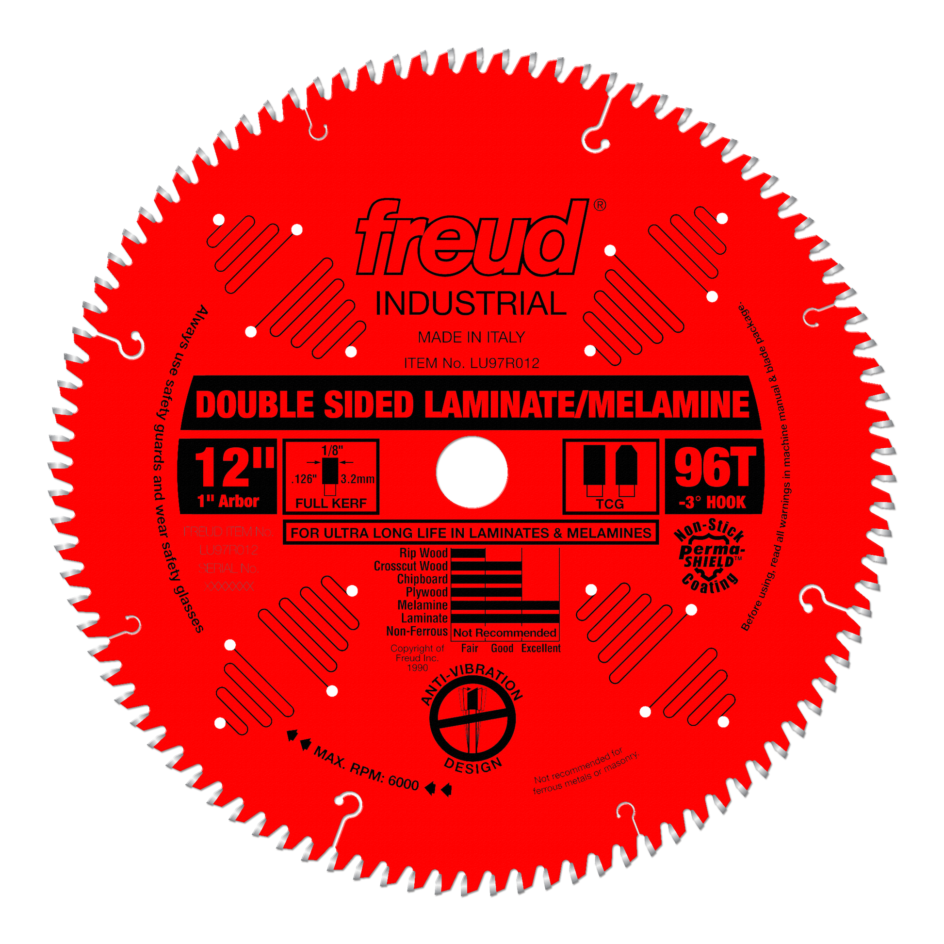 (LU97R012, 12 x 96 x 1" Bore, -3˚ Hook Angle, .126" Kerf, .087" Plate, TCG Dbl-Sided Laminate Red Saw Blade